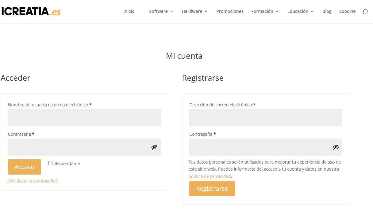 Crear una cuenta en la web de icreatia.es te permitirá ver las compras que realices después de crear la cuenta, editar las direcciones de envío y facturación…  Y te facilitará el proceso en futuras compras.