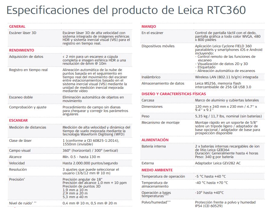 - Realmente portátil, totalmente automatizada, intuitiva y diseñada para la máxima productividad, la solución RTC360 combina eficientemente el RTC360, un escáner láser 3D de alto rendimiento, la aplicación para dispositivo móvil Leica Cyclone FIELD 360 que registra automáticamente los escaneos en tiempo real, y el Leica Cyclone REGISTER 360, un software de oficina que le permite integrar perfectamente su modelo 3D a su flujo de trabajo.